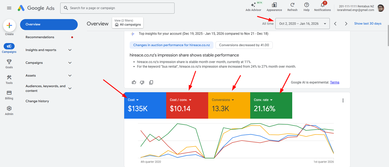 Since 2020, I have managed the end to end Google Ads strategy for Rentabus, one