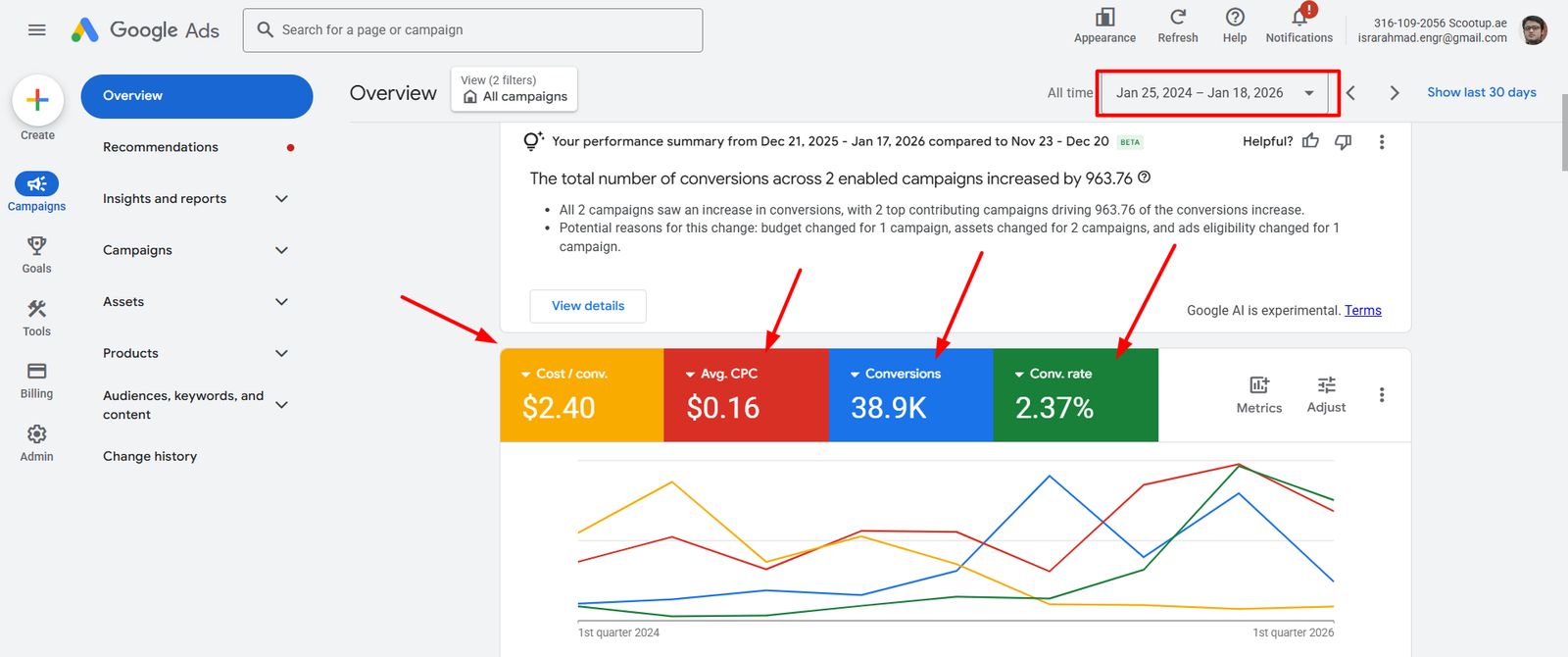 As the Performance Marketing Manager for Scootup, my role was to support in store sales through digital advertising. Since electric scooters are high value products, most customers prefer to see and test them before buying. The focus was to drive real showroom visits and test ride bookings rather than online purchases. Over time, this approach delivered 38,900+ in store conversions while keeping costs extremely low and results consistent. The main goals were to increase showroom footfall, reduce cost per conversion, and improve engagement from local, high intent customers near physical stores. OUTCOMES: Total in store conversions: 38,900+ Total clicks generated: 565,000 Lifetime cost per conversion: $2.40 Cost per conversion reduced from $5.21 to $1.46 (72% improvement) CTR increased from 1.40% to 2.44% Peak conversion rate achieved: 16.30%